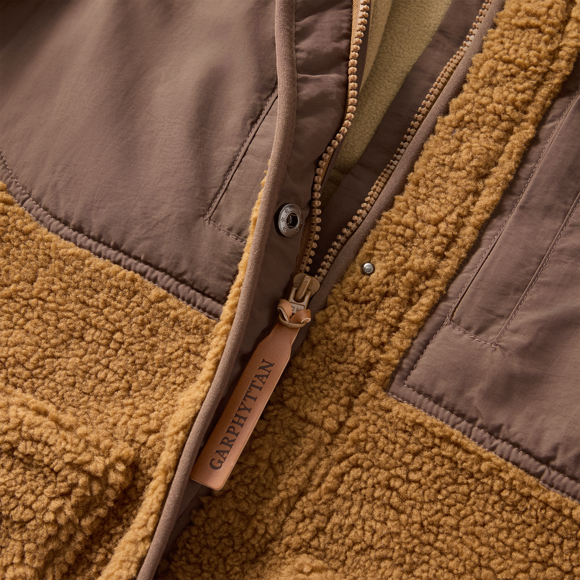 Laget av slitesterk pilefleece i 100 % polyester med myk børstet innside for ekstra komfort. Den vindavvisende konstruksjonen beskytter mot kjølige vinder, mens forsterkede nylonpaneler med DWR-behandling gir økt slitestyrke i utsatte områder.