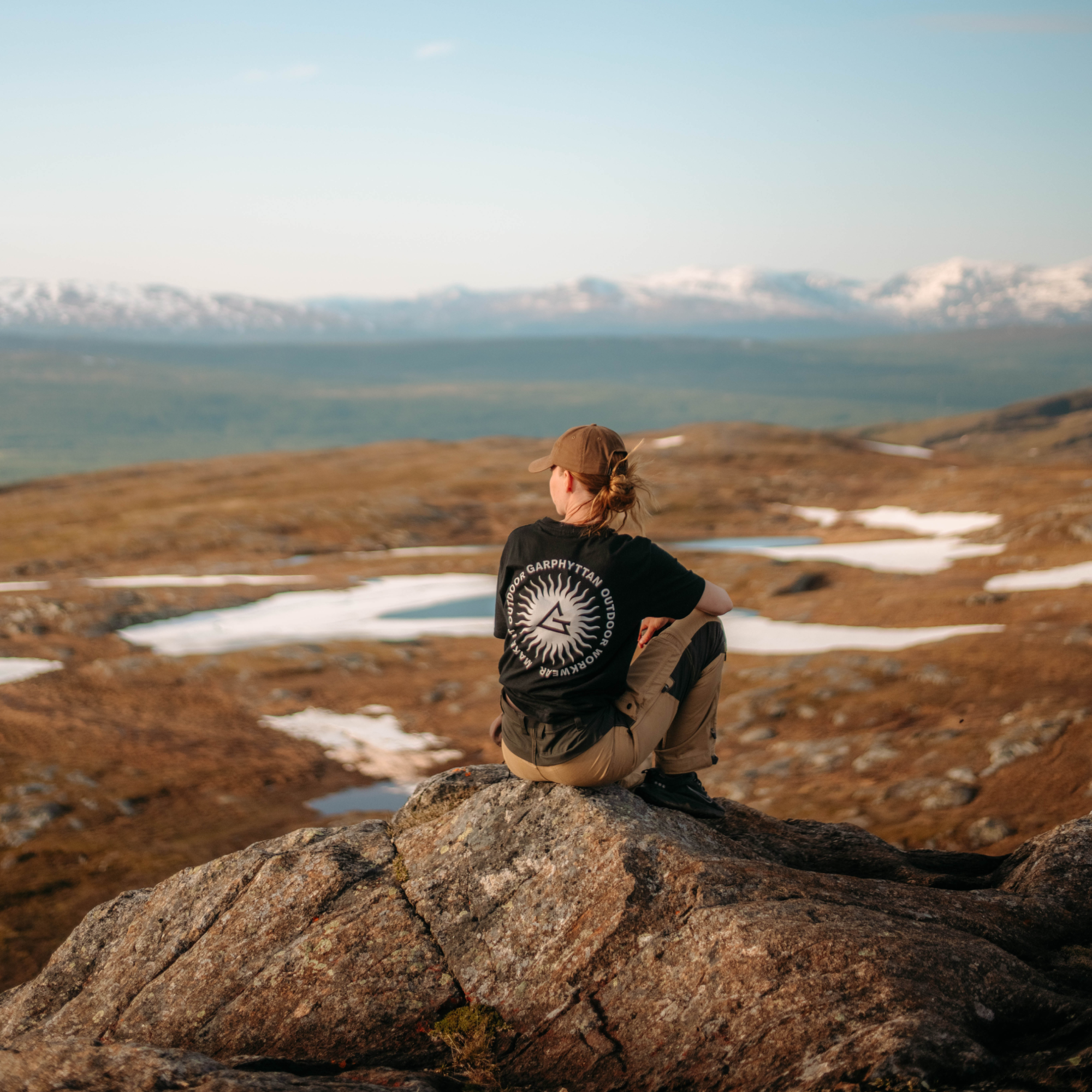 To extend the life of your T-shirt, wash less and air more – often that’s all it takes. For small stains, spot clean with a damp cloth. When machine washing is necessary, turn the T-shirt inside out to preserve the print and use a gentle cycle at 30°C with similar colors. Avoid tumble drying to maintain both fit and function.