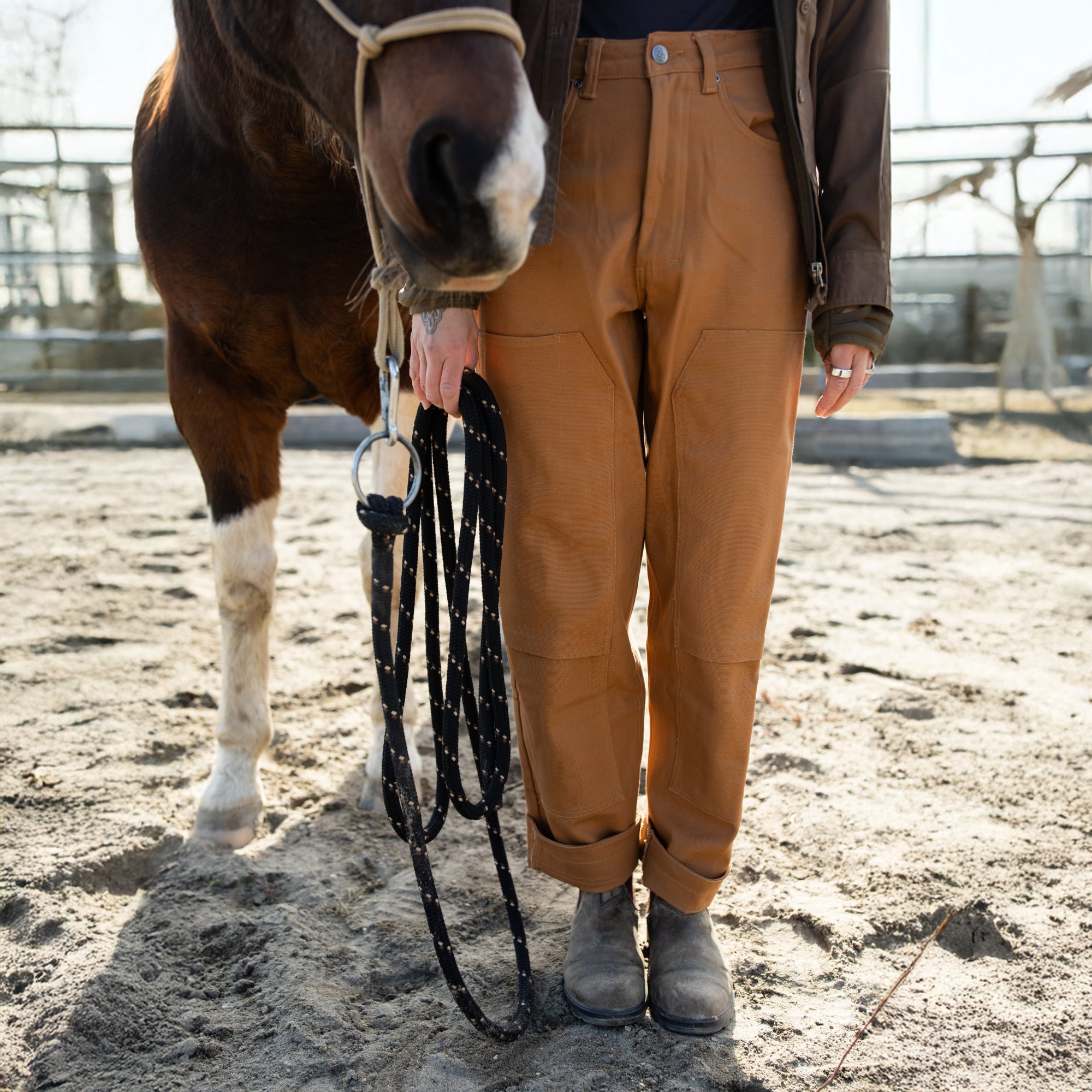 95% bomull / 5% elastan. Dubbelvaxade för bättre vattenavvisning och lång hållbarhet. För att bevara finishen och förlänga plaggets livslängd, undvik onödig tvätt — ofta räcker det att vädra byxorna. För mindre fläckar, punktbehandla med en fuktig trasa eller svamp. Behöver de tvättas, använd skonsam tvätt i 30°C med liknande färger. Torktumla inte. Vaxa gärna om vid behov för att fräscha upp den vattenavvisande ytan — valfritt, inte nödvändigt.