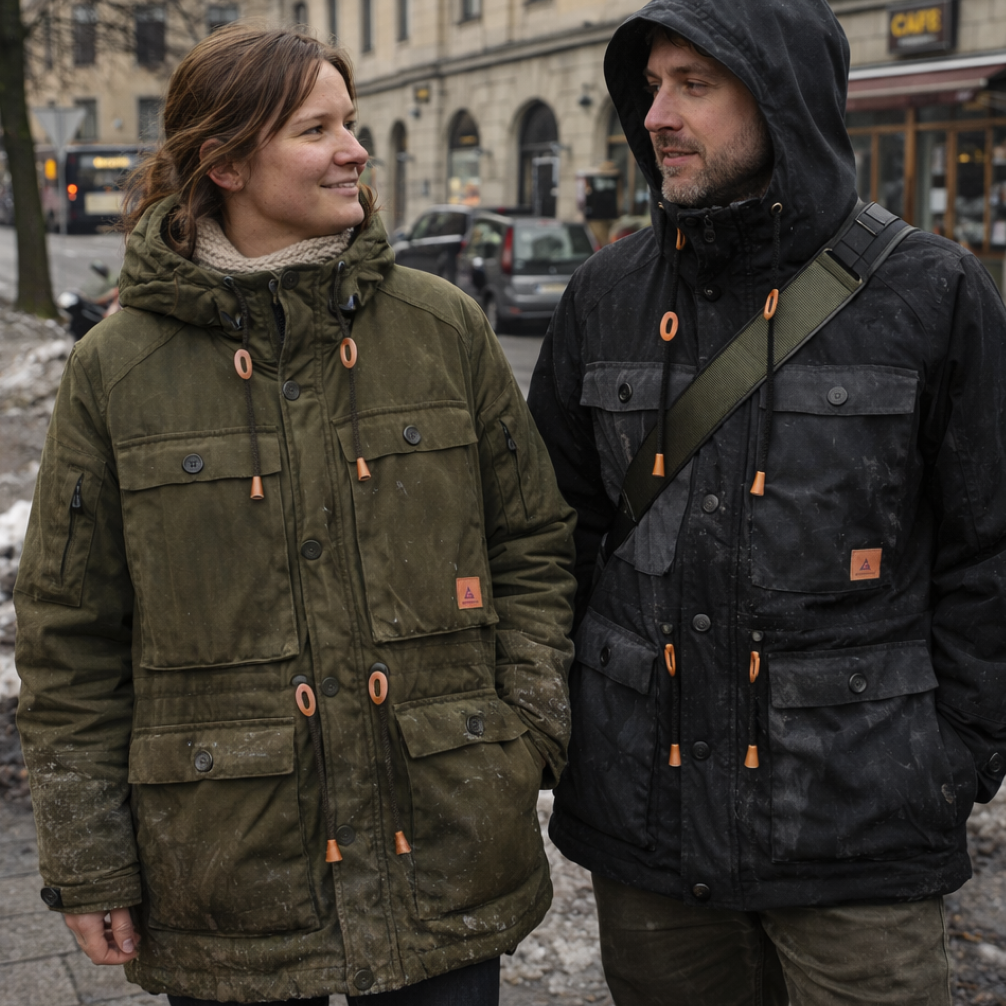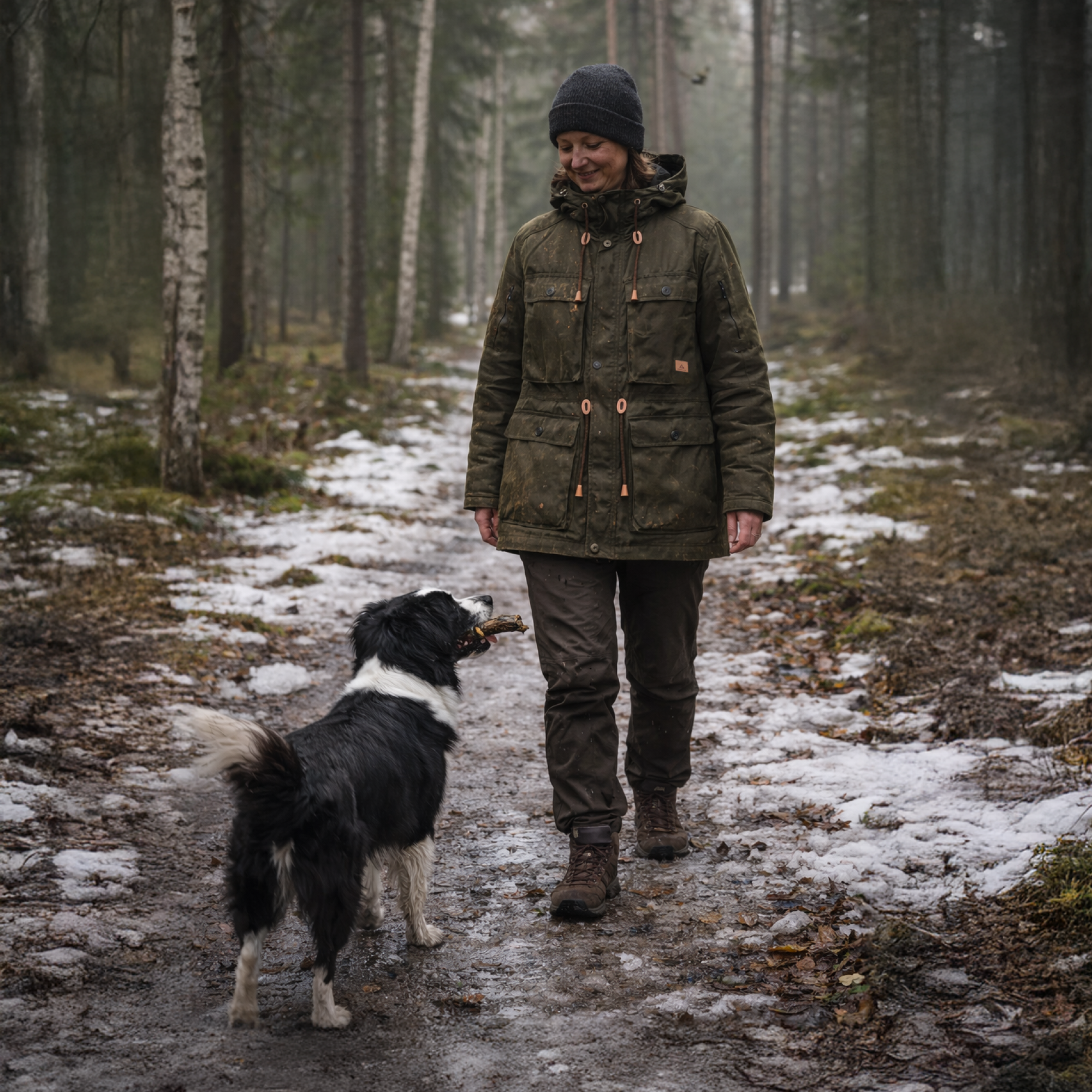 Vardagsbruk, friluftsaktiviteter, stadspromenader, lättare arbete och liv i kallt och skiftande nordiskt väder, från landsbygd till stad.